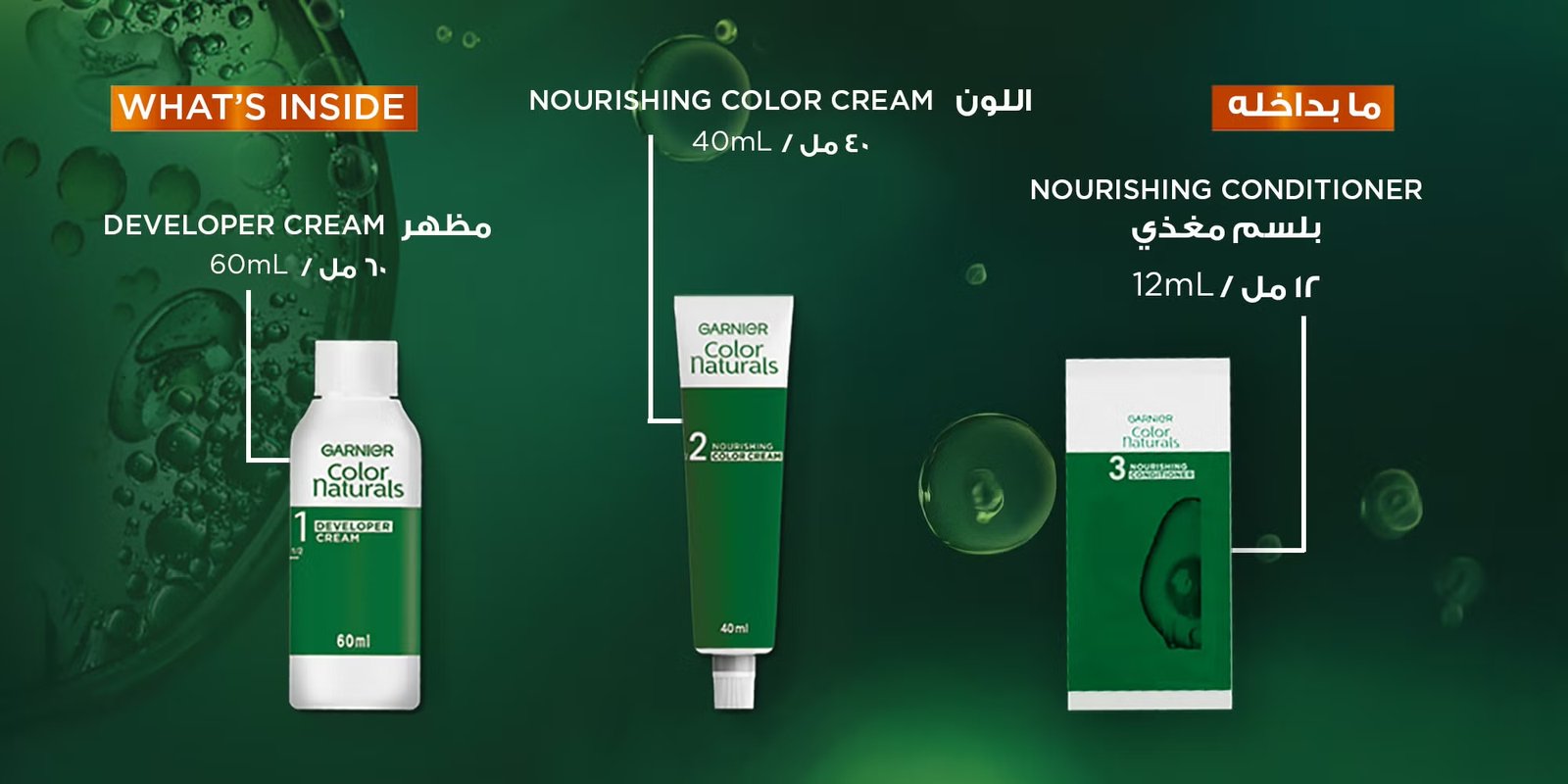 Garnier Color Naturals is a permanent creamy hair color enriched with olive oil, which nourishes the hair while coloring. It deeply nourishes your hair, making your color richer, more consistent, and shinier. The second percentage of olive oil in the conditioner is a real treat for your hair. Your hair is soft and your color is radiant.