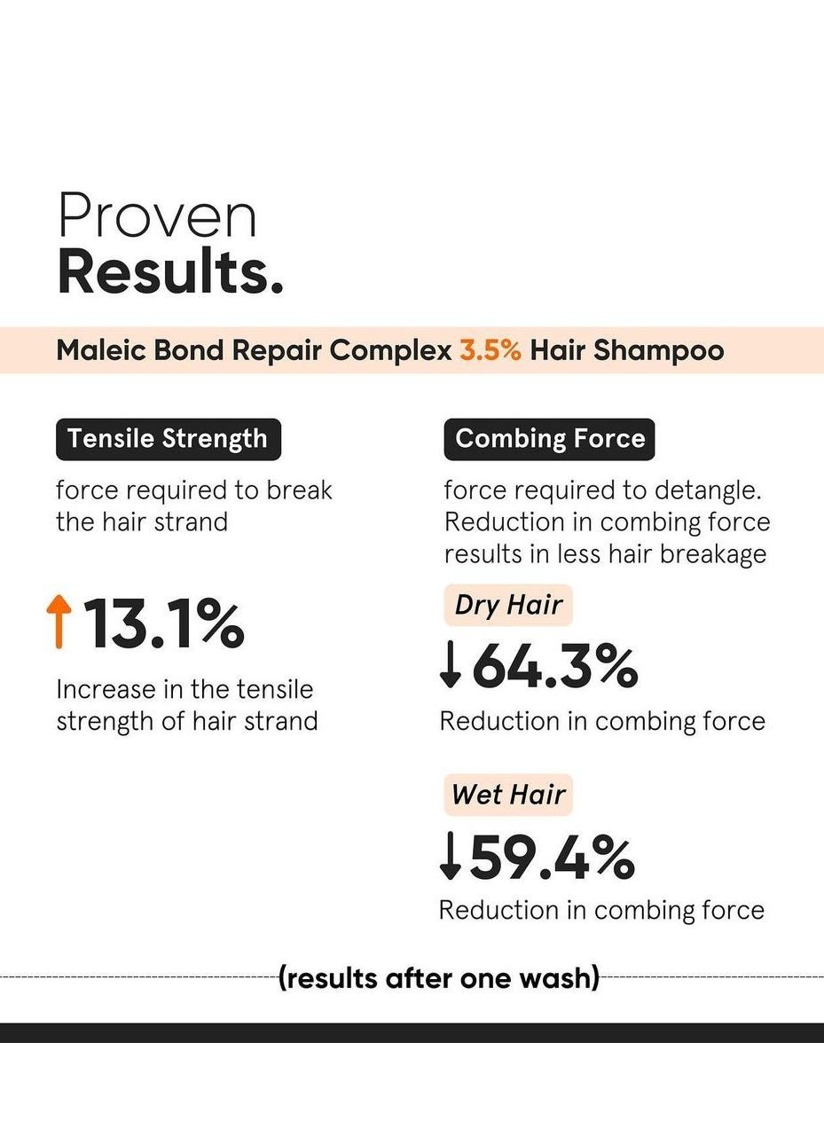 - A new Patent Pending combination of Maleic Acid, Tranglutaminase and Amino Acids in potent concentration of 3.5% that repairs weak and damaged hair bonds and protects hair from further damages