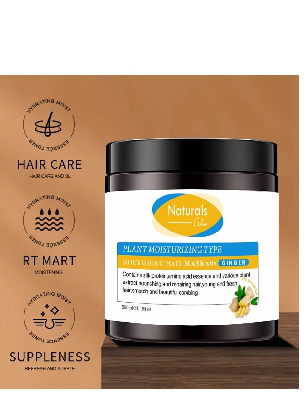 OverviewThe Nourishing Ginger Hair Mask is a natural product specially designed to nourish the scalp and stimulate hair growth. This mask contains a rich blend of natural ingredients, including silk proteins, amino acids, a variety of plant extracts, and ginger.